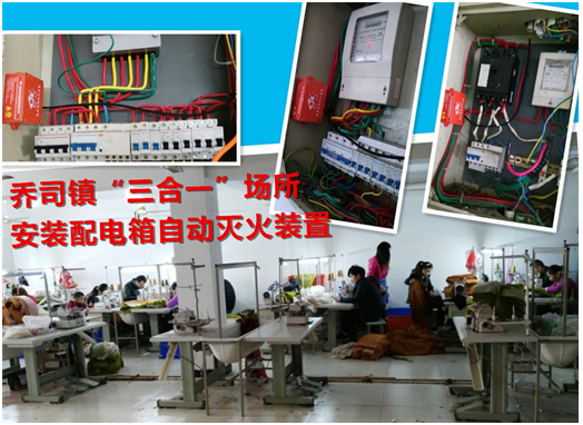 與以往“三合一”整治工作不同的是,此次工作的亮點是鎮政府為所有“三合一”場所的配電柜、配電箱安裝微型自動滅火裝置,該裝置由杭州華神院士工作站自主研發,安裝在高運轉負荷、高火災風險的配電柜、配電箱內,可無人值守地監測火情,一旦發現明火即可秒速啟動自動滅火裝置,噴發一種名為熱氣溶膠的環保型乳白色滅火氣體,只需十余秒就可完全撲滅明火,并啟動報警鈴音。該裝置的安裝,從高火災隱患的電氣源頭部位杜絕了火患,為“三合一”場所內的人員疏散和逃生贏得了寶貴的時間,有效提高了自防自救的能力。